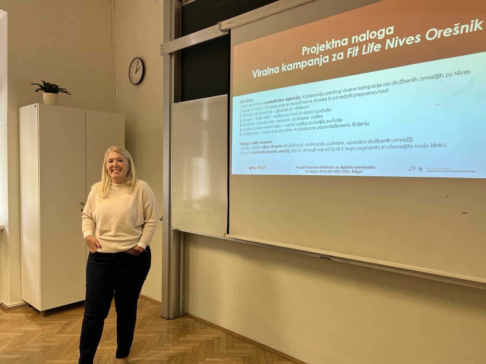 Sodelovali so strokovnjaki GEA College – Centra višjih šol. Maja Blažeka je dijake Srednje ekonomske šole Roška popeljala skozi ustvarjanje digitalne kampanje – od prvotne ideje do končne izvedbe.